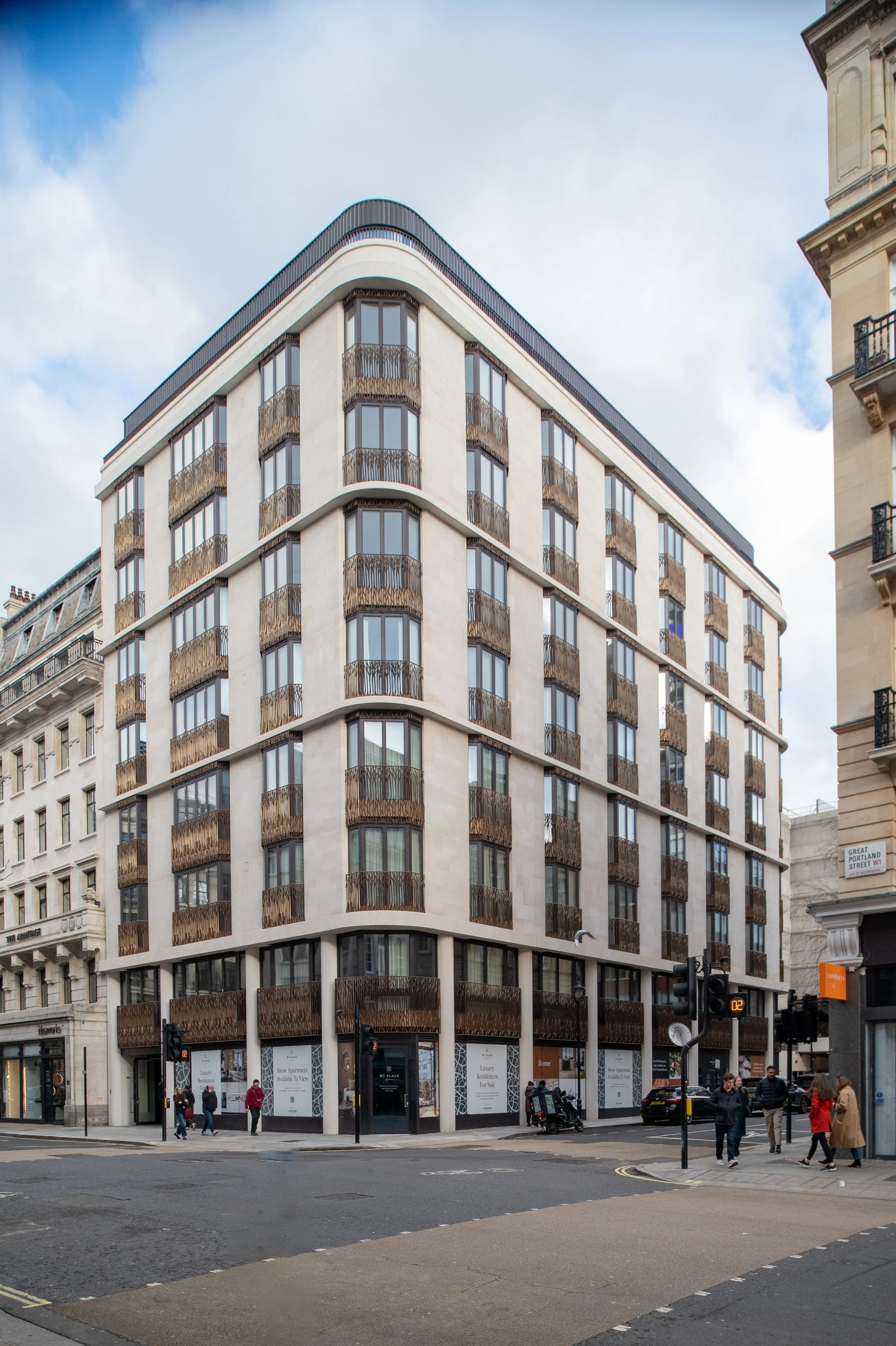 The facade is a combination of precast, fair-faced concrete, Portland stone and cast aluminium balustrades which provides a rich palette of materials. Internally, layouts were designed to minimise internal circulation and maximise useable space.